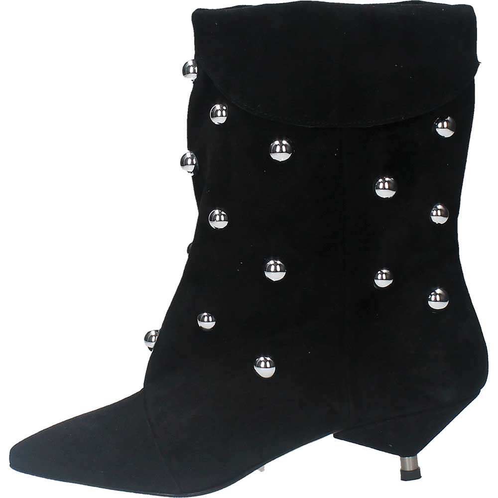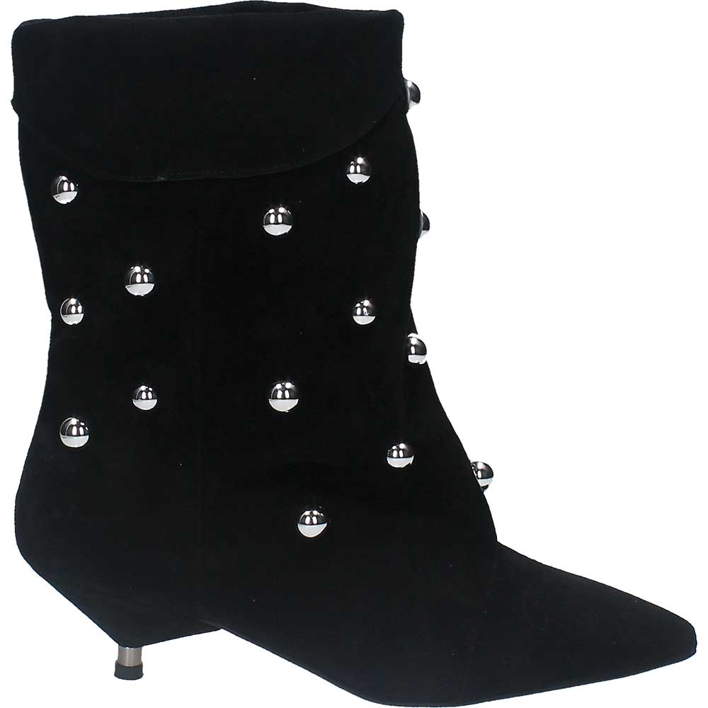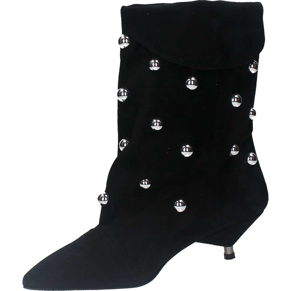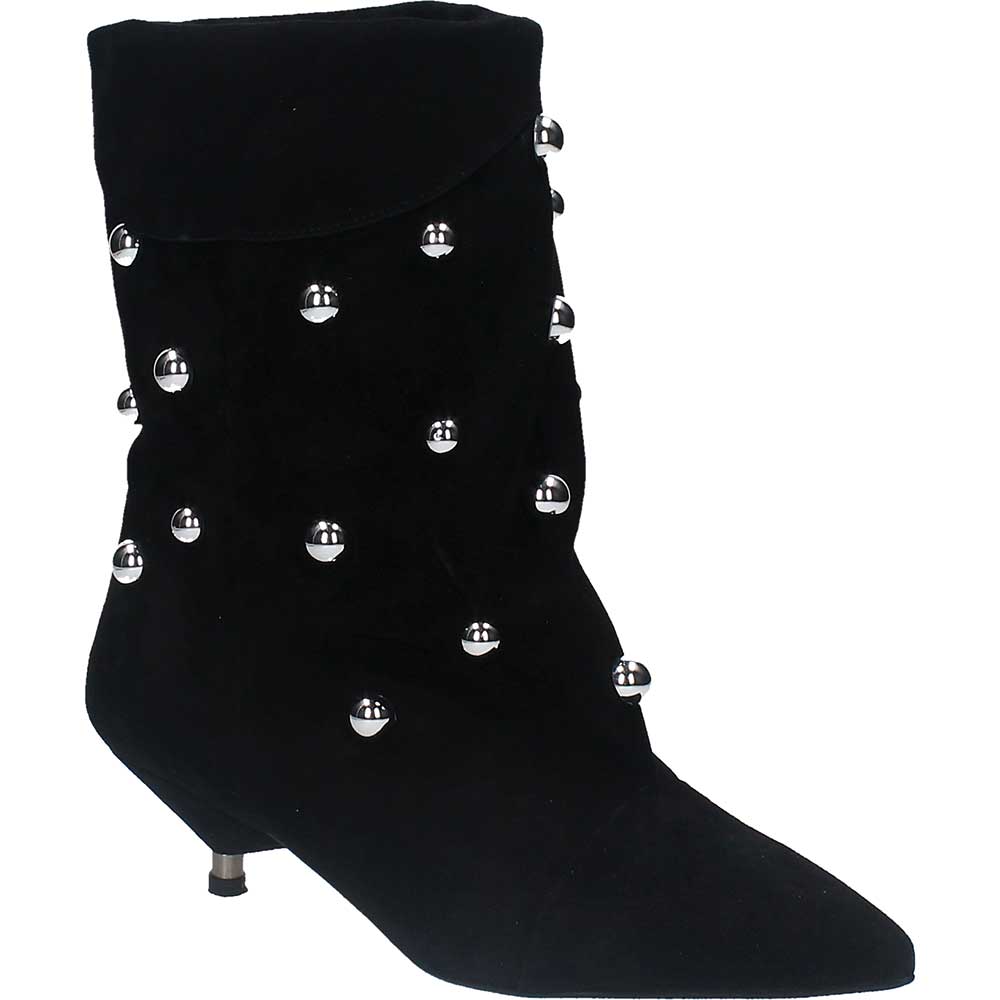 Tronchetto nero in camoscio, con interno in pelle, è un must-have per le donne chic e glam. La sua punta e le borchie grandi lo rendono unico e di tendenza. Inoltre, il tacco basso e il gambale morbido offrono comfort e stile!
