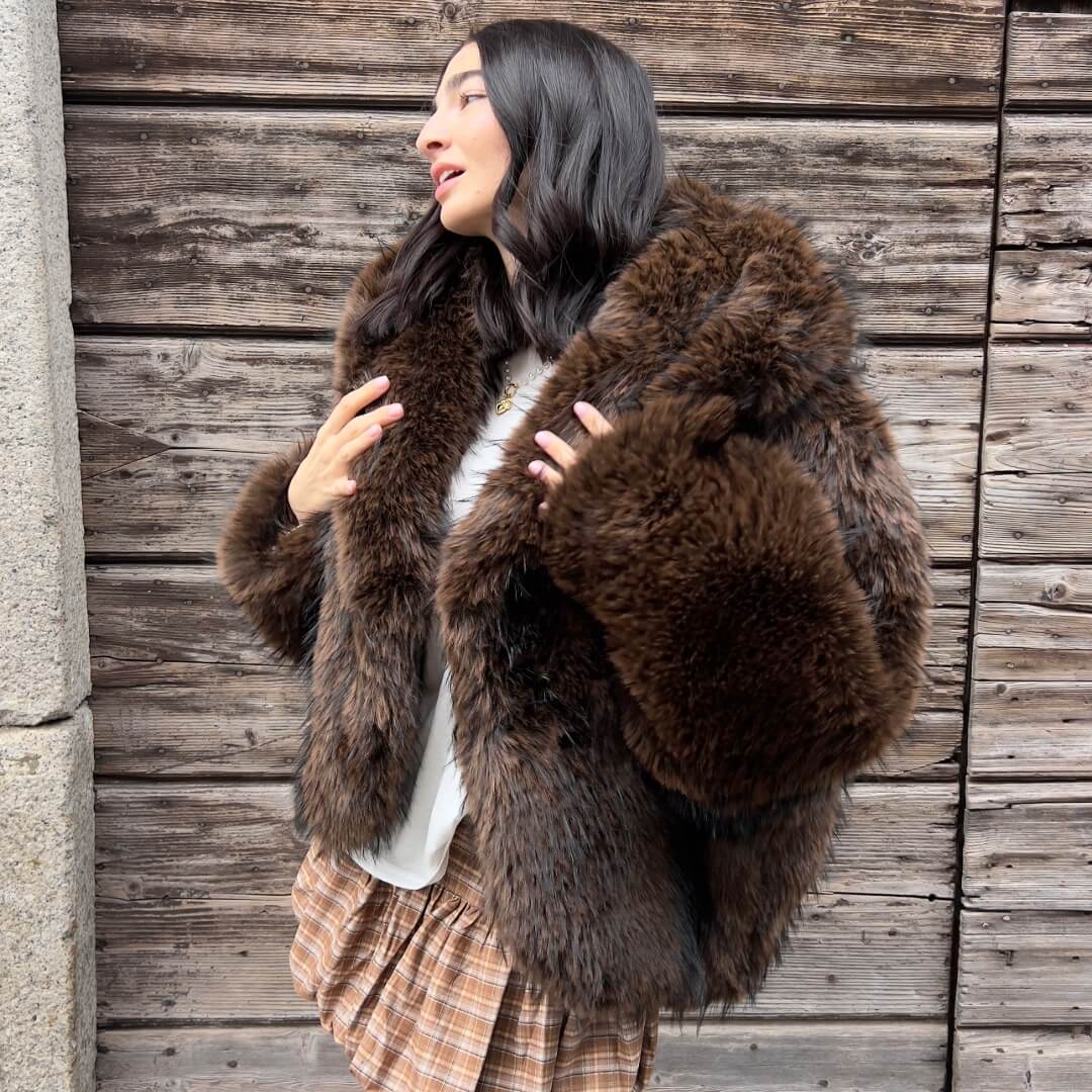 Ecopelliccia Diva choco/black con cappuccio