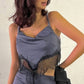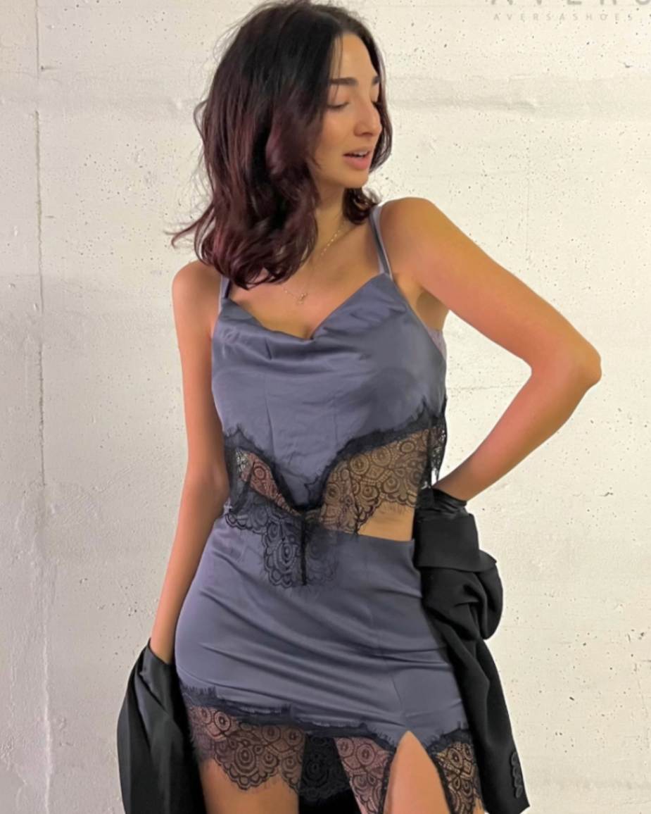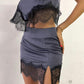 Top Mahito grigio con pizzo nero